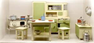 A kislányok babái köré létrehozott világ, azaz a babaház és berendezése mind anyagában, mind kivitelezésében pontosan leképezte a felnőttek tárgyi kultúráját.